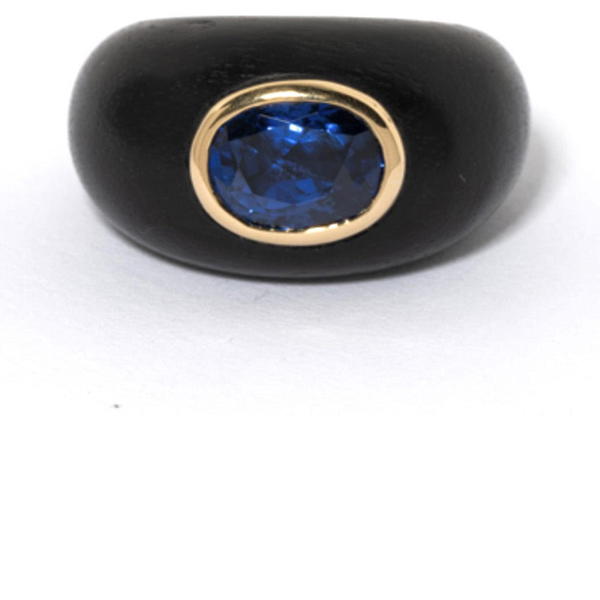 BLUE SAPPHIRE AND BLACK WOOD RING