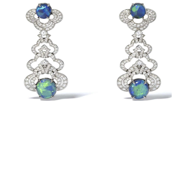 Featuring an ova shape black opals weighing 7.73 carats and diamonds weighing 1.44 carats mounted in 18K white gold.