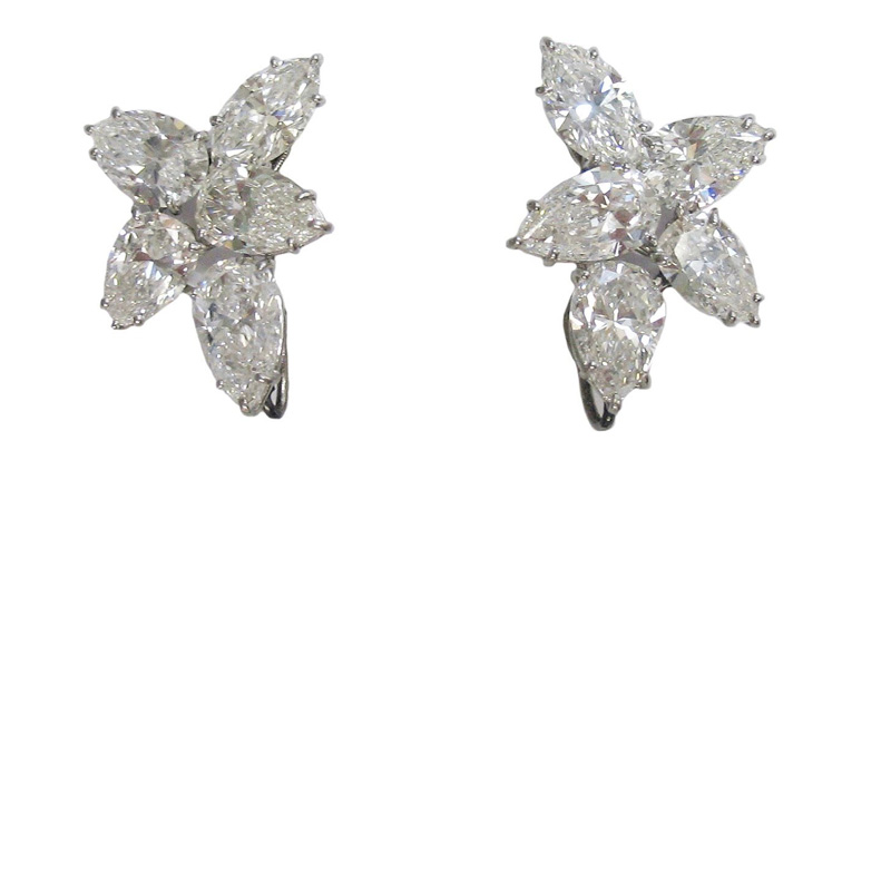 Of cluster design, set with pear and marquise shaped diamonds weighing 12.51 carats range from D-F color and VVSI to S12 clarity, mounted in platinum
