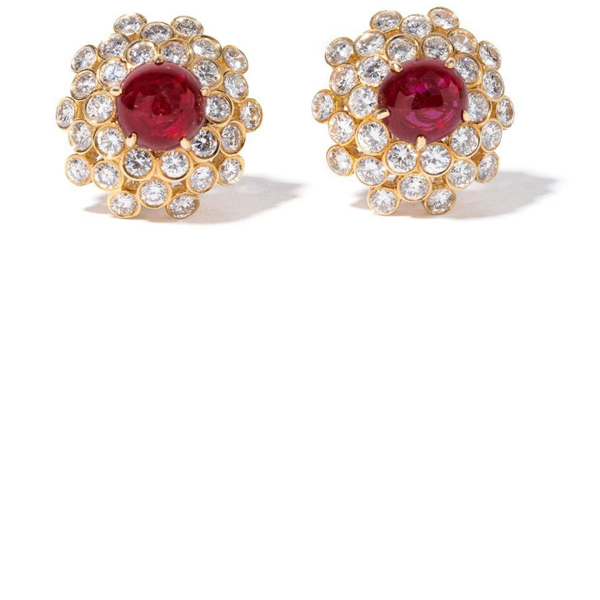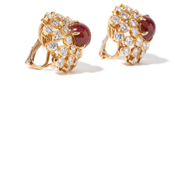 Featuring cabochon rubies weighing 14 carats and Diamonds weighing 6 carats mounted in 18K yellow gold.