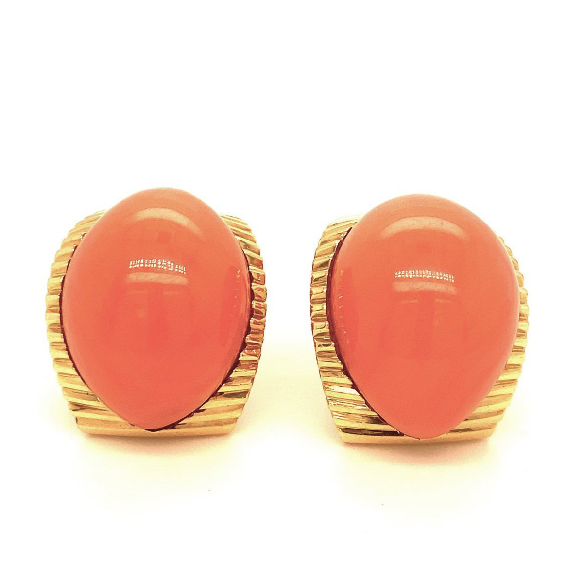 CORAL AND GOLD EARCLIPS BY CARTIER,