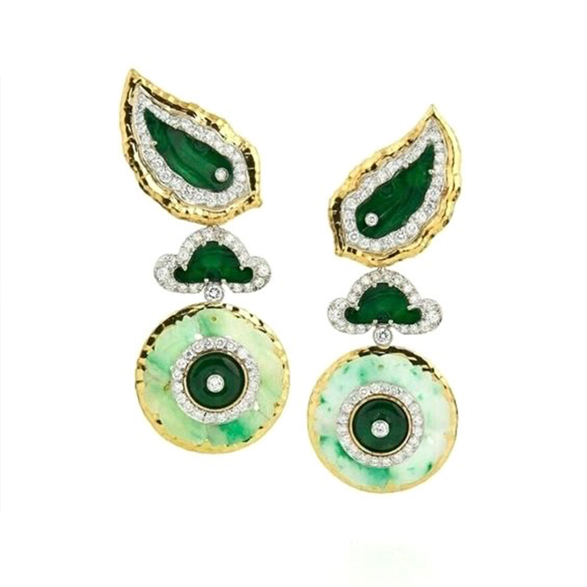 CONTEMPORARY EMERALD, JADE AND DIAMOND EARCLIPS BY DAVID WEBB