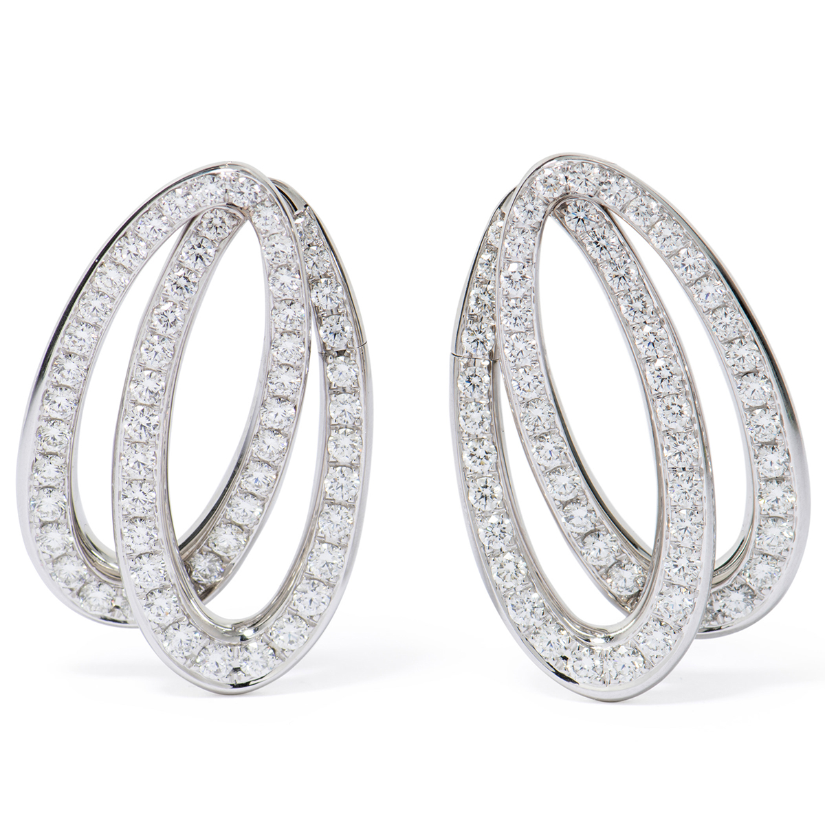 CONTEMPORARY “ENLACED” DIAMOND AND GOLD HOOP EARCLIPS BY FAWAZ GRUOSI