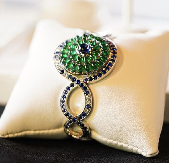 Bracelet takes us to an idyllic nature in Sardinia where intensely colored sapphires and emeralds shimmer as candy-bright flowers bloom