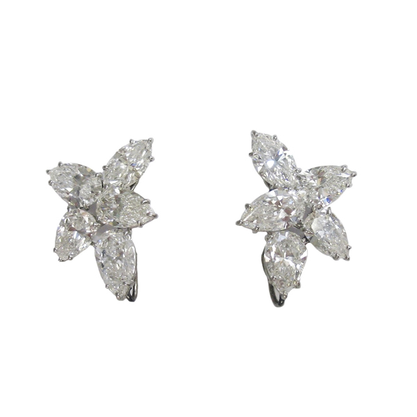 Of cluster design, set with pear and marquise shaped diamonds weighing 12.51 carats range from D-F color and VVSI to S12 clarity, mounted in platinum