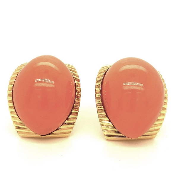 CORAL AND GOLD EARCLIPS BY CARTIER,