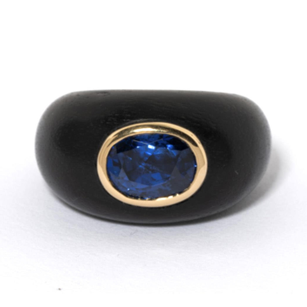 BLUE SAPPHIRE AND BLACK WOOD RING