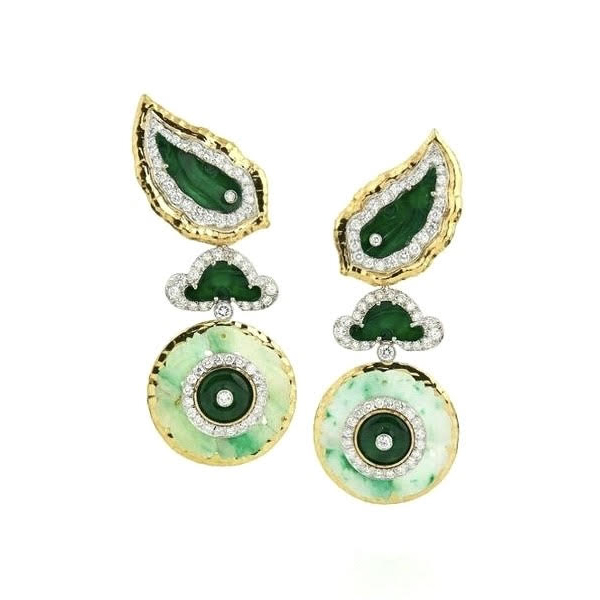 CONTEMPORARY EMERALD, JADE AND DIAMOND EARCLIPS BY DAVID WEBB