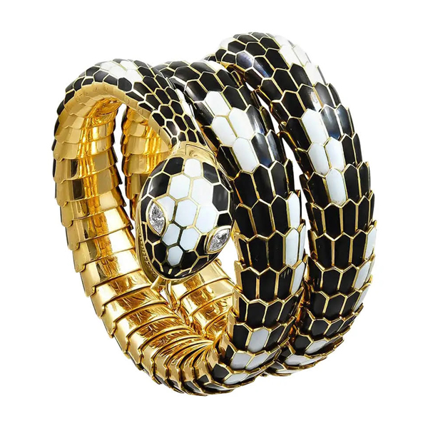 BLACK & WHITE ENAMEL AND DIAMOND “SERPENTI” WATCH BY BULGARI, CIRCA 1960s