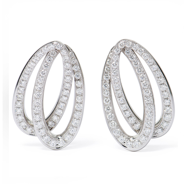 CONTEMPORARY “ENLACED” DIAMOND AND GOLD HOOP EARCLIPS BY FAWAZ GRUOSI